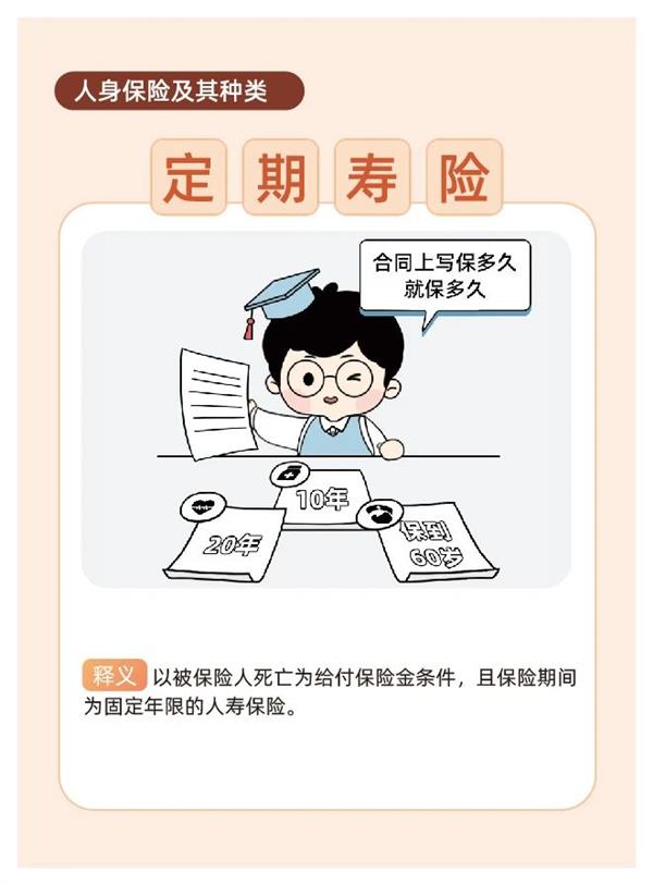释义:以被保险人死亡为给付保险金条件,且保险期间为固定年限的人寿保险。