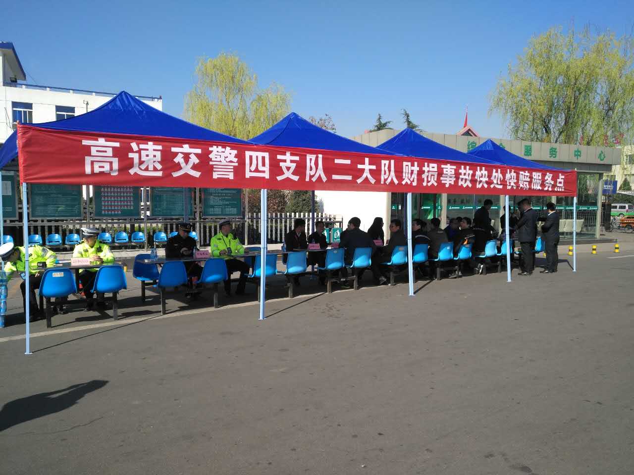 4月2日上午,临汾市保险协会与山西高速交警四支队二大队临汾市保险市场10家产险公司,在京昆高速临汾收费站启动财损事故快处快赔服务站,正式拉开清明假期交通事故快处快赔服务工作帷幕。通过开展高速公路交通事故快处快赔服务工作,整合路政、保险公司等有关部门,实现小额财损事故的现场定责、现场估损理赔、赔偿调解、应急救援、保险咨询、车辆故障排除等“一站式”便民服务,从而提高机动车交通事故快速处理和理赔时效,减少因交通事故导致的拥堵,最大限度地服务民生。服务站启动后,现场工作人员积极向过往机动驾驶人及广大交通参与者详细讲解了快速处理的有关流程和注意事项,让广大驾驶人了解到快处快赔带来的方便、快捷、高效。