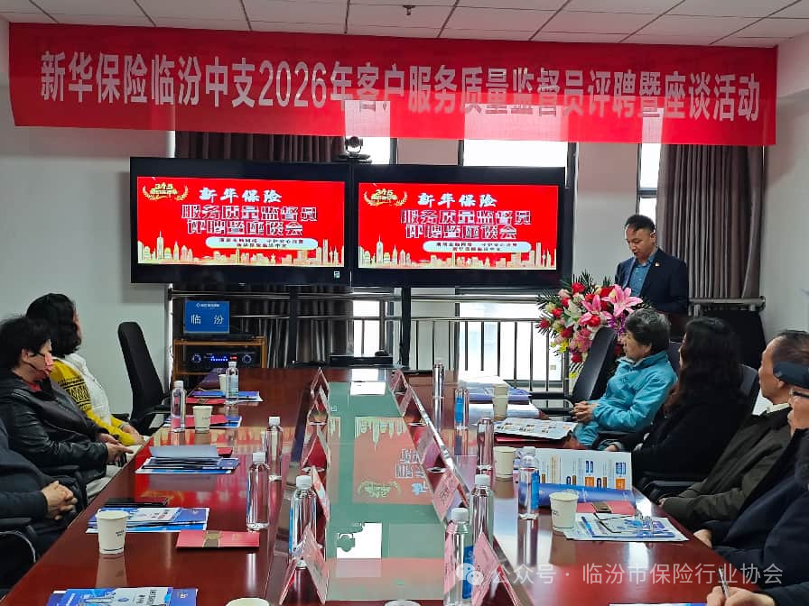 3月13日下午,新华保险临汾中支举办2026年度客户服务质量监督员评聘活动,特邀临汾市保险行业协会、消费者协会相关领导及监督员代表出席。