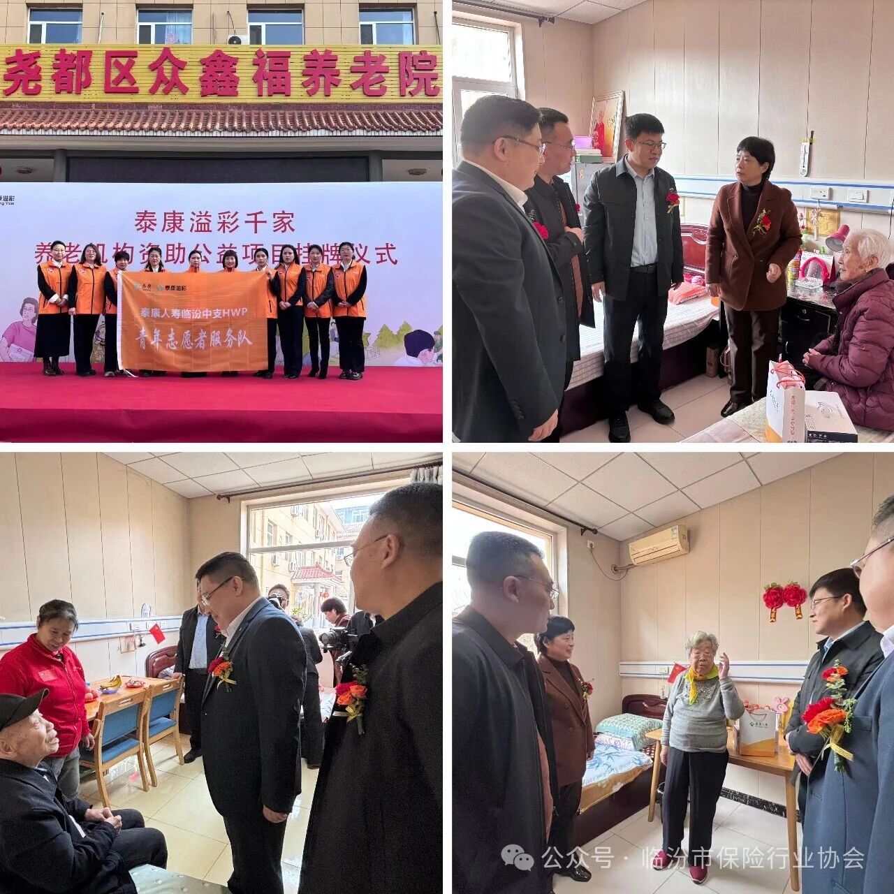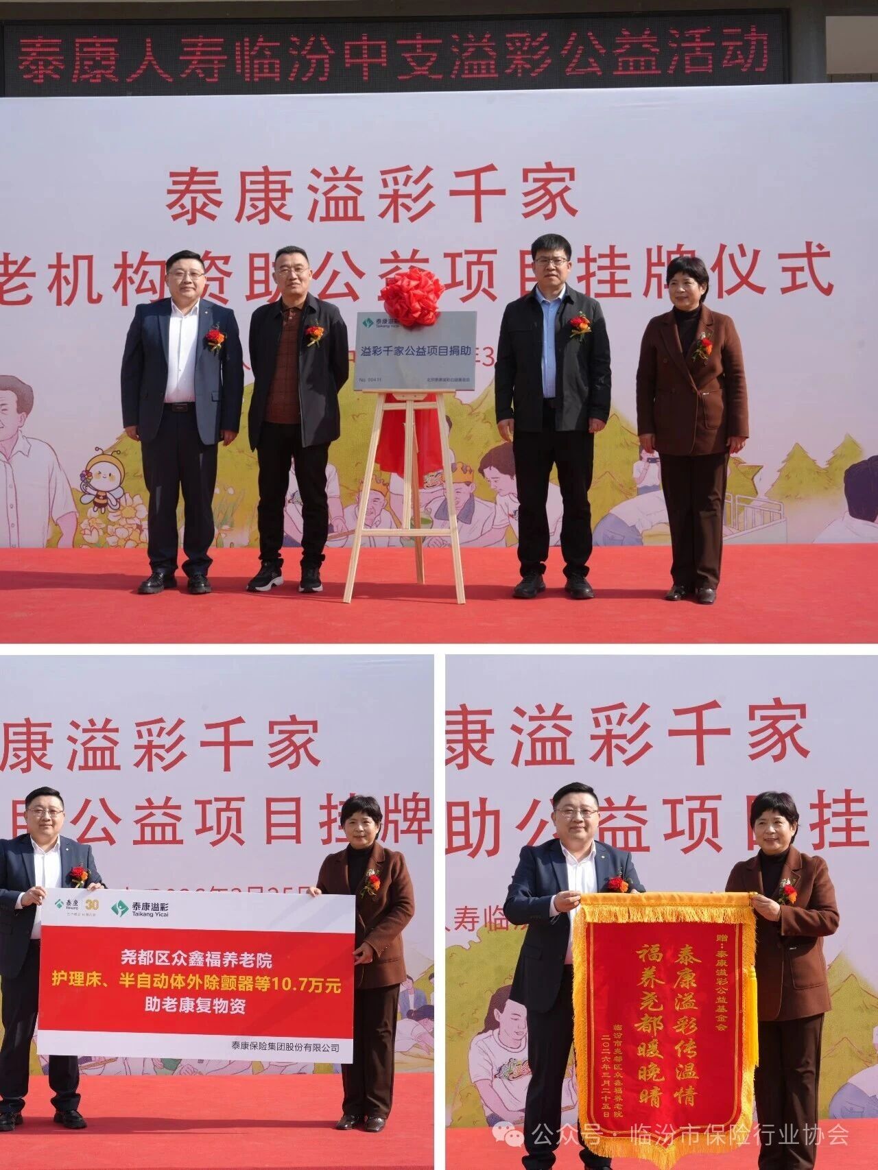 3月25日,泰康人寿临汾中支联合临汾市民政局、临汾市保险行业协会,走进尧都区众鑫福养老院,举行“溢彩千家公益项目捐助”揭牌仪式暨公益慰问活动。